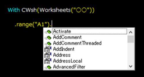 Worksheets("○○")でシートを取得したとき困るのが、「.」を入れても入力選択肢が出ないことです。この対処法として「変数にSet」「シートオブジェクト名」がありますが、第3の方法「Worksheet型にキャストする関数を作る」方法を解説します。
